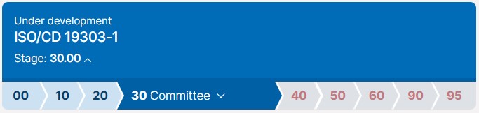 Work as part of 19303-1 is currently under revision as a Committee Draft (CD) through the International Standard Organization’s (ISO) Technical Committee 130 and Working Group 13.
