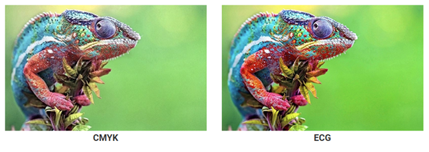 Image output using CMYK vs ECG. Image courtesy of INX.