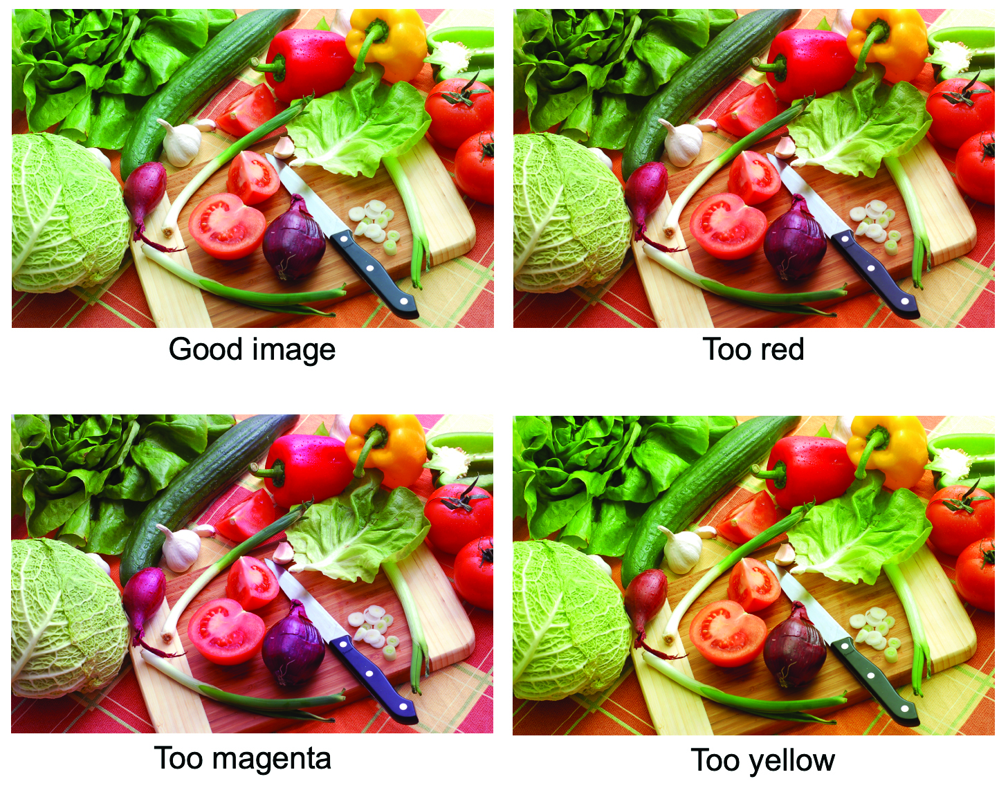 Poor color reproduction is typically attributed to gray balance, since the human eye is far more sensitive to color shifts versus changes in contrast. When gray balance is inaccurate, images will have a noticeable color cast and could appear too red, too blue, and so on.