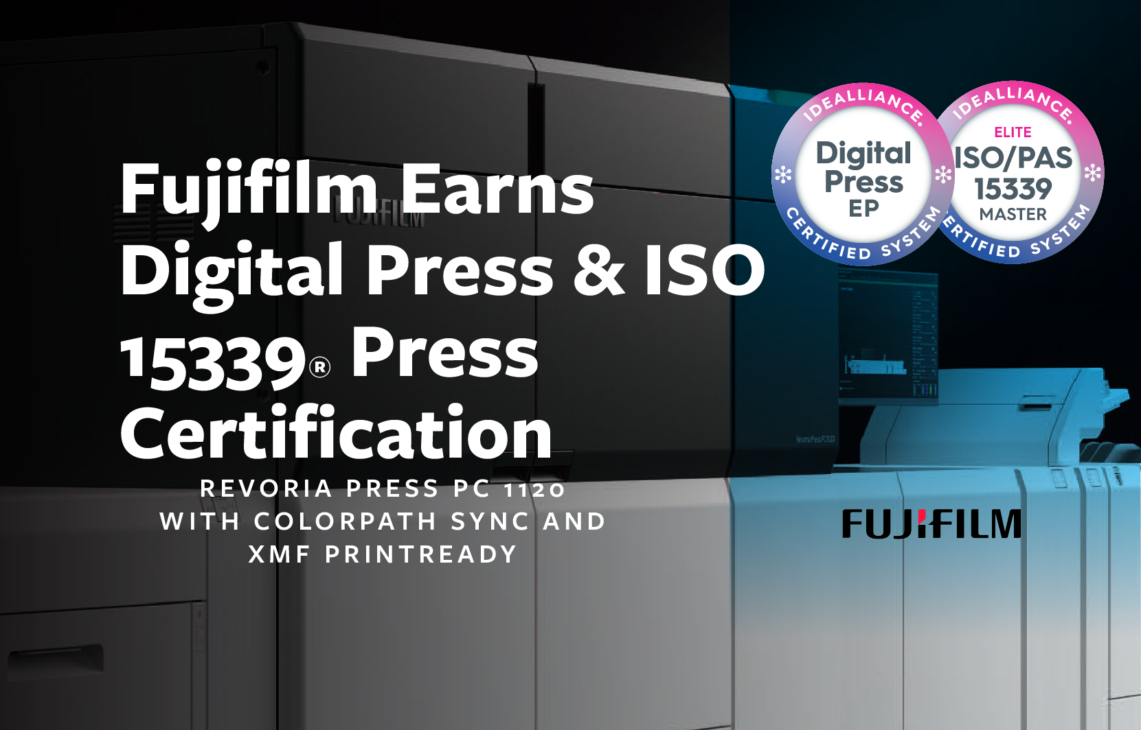 Fujifilm’s REVORIA PRESS™ PC1120 toner-based press, its COLORPATH Sync technology for color management, and its XMF PressReady print production workflow products all were designated with the prestigious Idealliance Digital Electrophotographic Press Certification. -