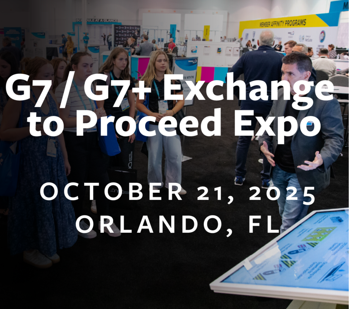 Learn about the upcoming G7/G7+ Exchange taking place on Tuesday, October 21, the day prior to PRINTING United Expo in Orlando, FL.